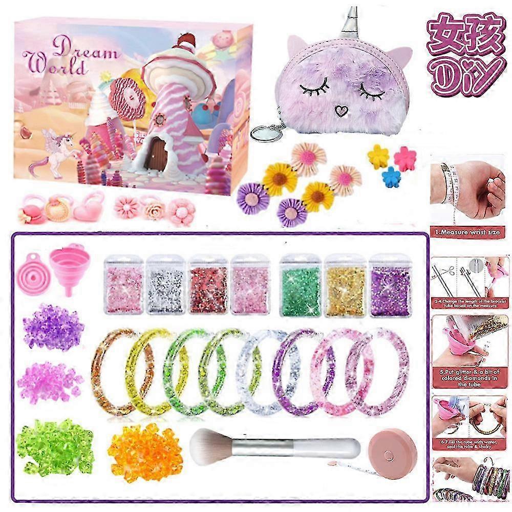 Glitter Bracelet Making Kits with Rings Wallet Hair Clip Gifts, DIY Arts and Crafts Set for Girls , Sparkly Xmas Christmas Friendship Bracelets with 4