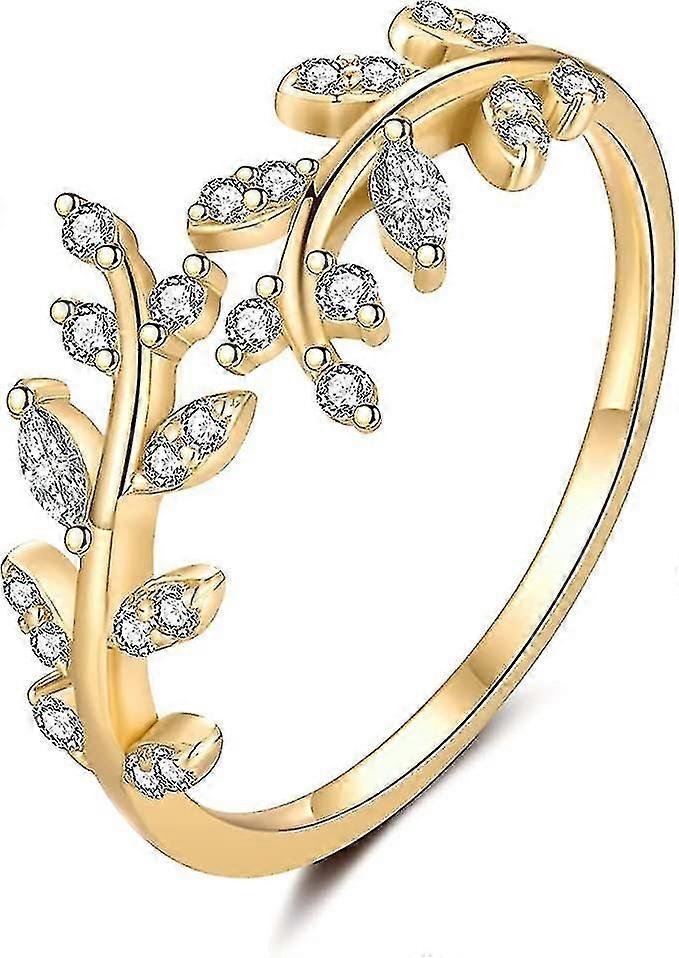 Ring 925 Gold Leaf Adjustable Open Ring Zirconia Jewelry