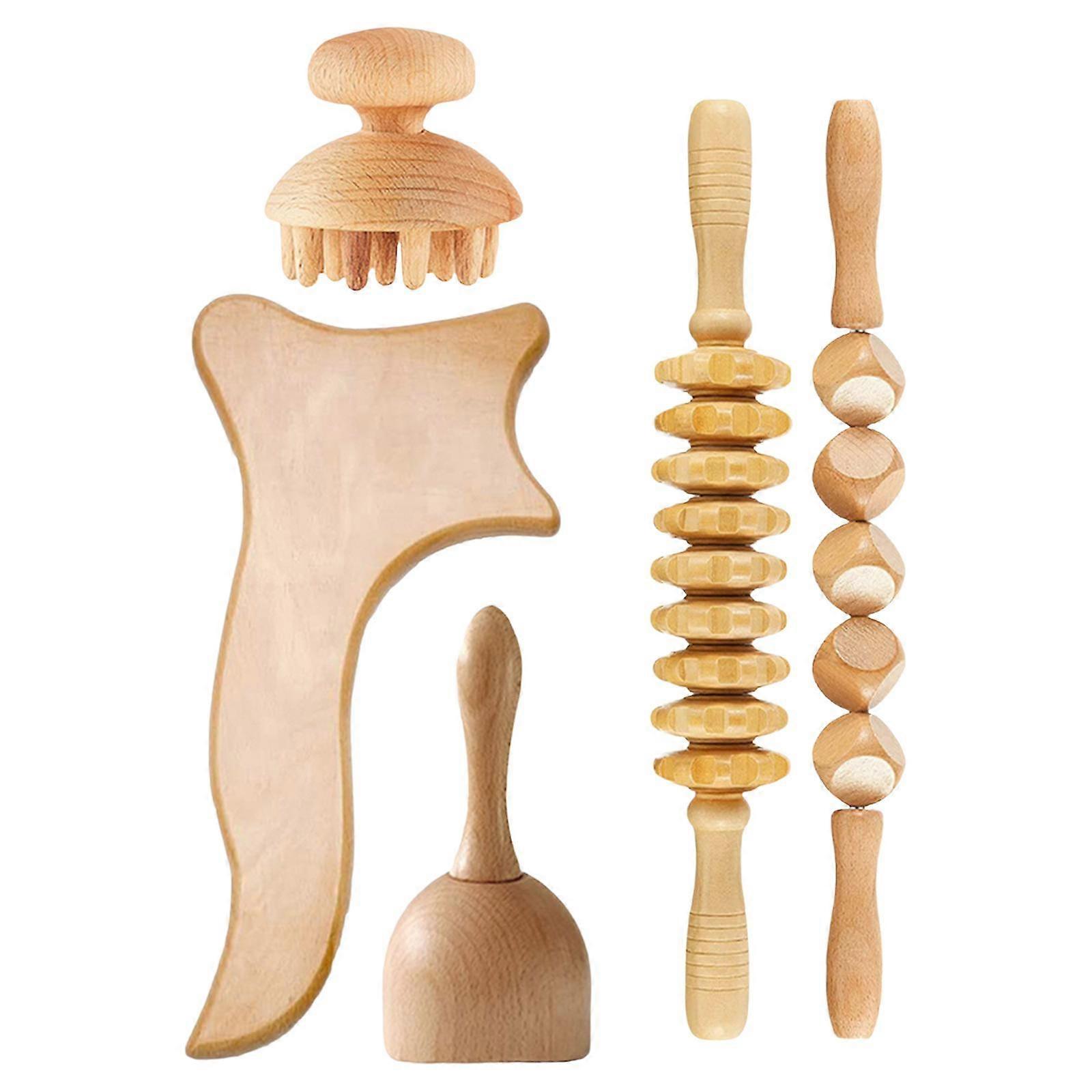 5 Count Wooden Fascia Massager Tool Set for Lymphatic Drainage Skin Soothing
