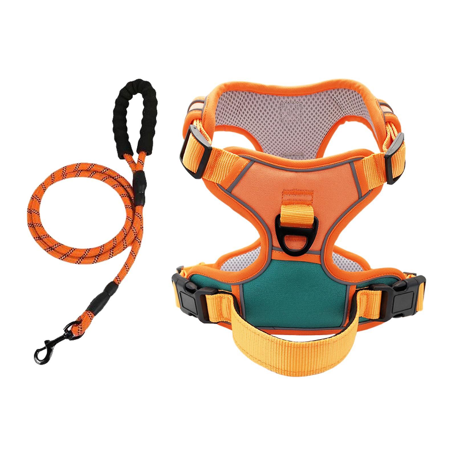 Dog Harness with Leash Adjustable Soft with Front Clip for Dogs Pets Walking Orange Green M