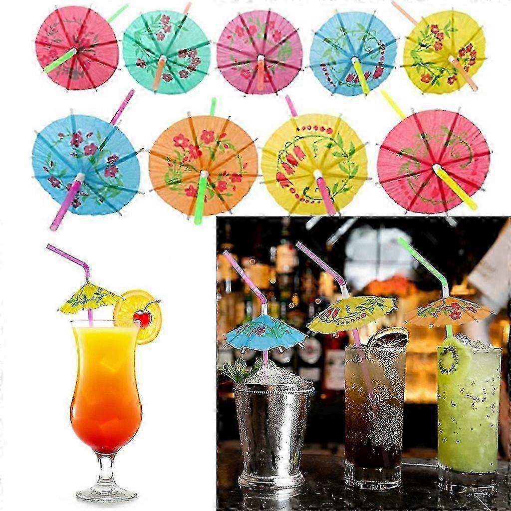 100pcs Umbrella Disposable Drinking Straws For Luau Hawaii Party