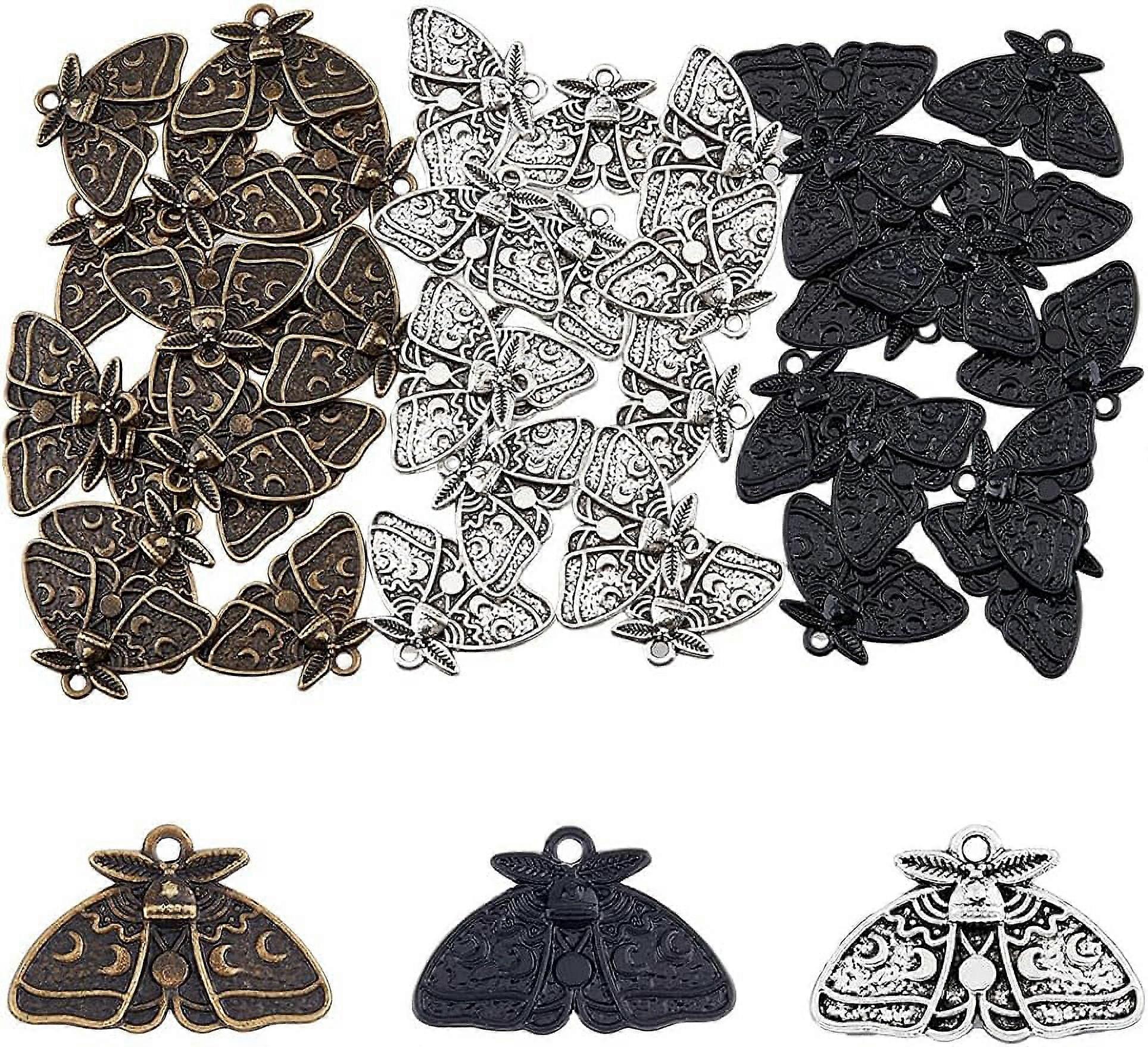 Luna Moth Charms Tibetan Style Moth with Moon Phase Pendants Antique Bronze/Silver/Black Animal Pendants Alloy Charms for Jewelry Making