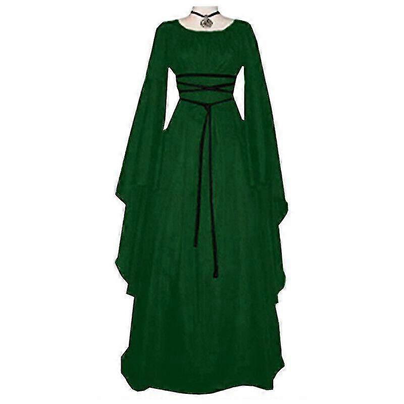 Renaissance Medieval Halloween Womens Fancy Dress Gothic Costume Green_y High Quality