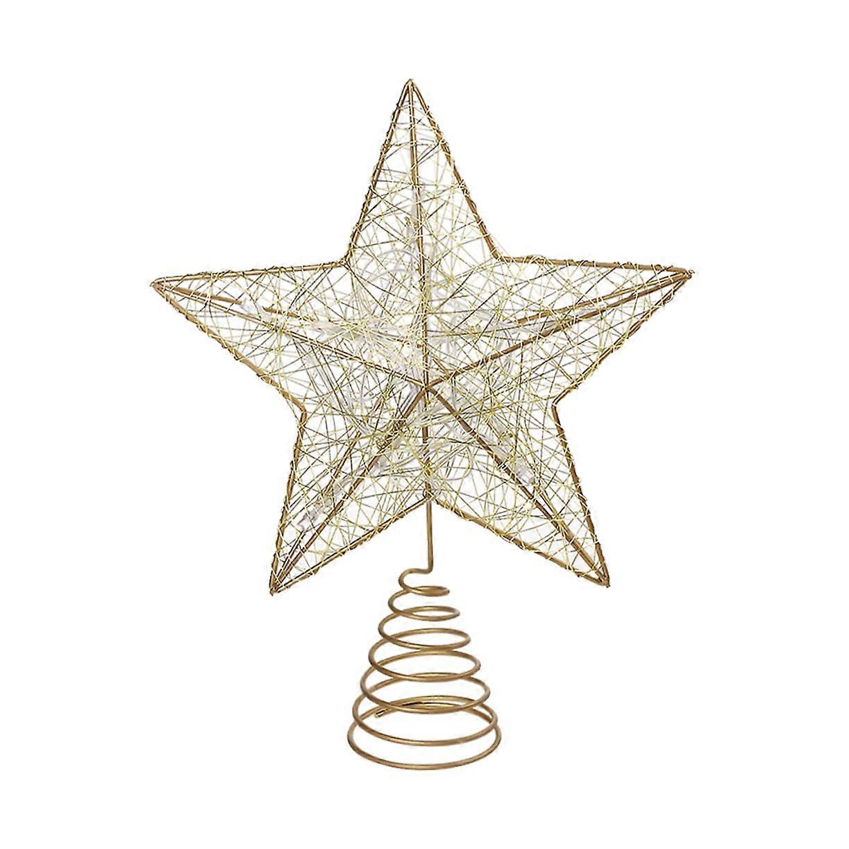 Luminous Golden Star Christmas Tree Topper 30cm LED Decor For Christmas Battery-Operated Not Included