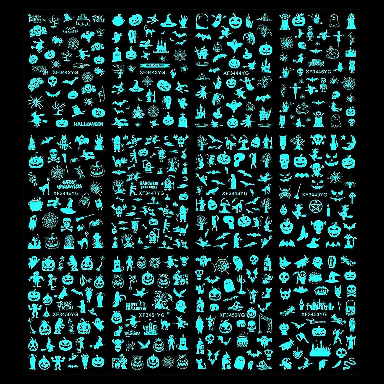 Luminous Halloween Nail sticker Self Adhesive Skull Pumpkin Nail Art Stickers