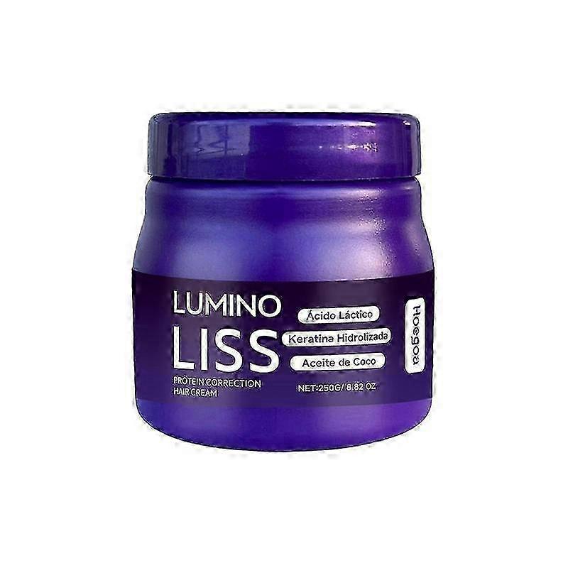 Features:<br>Luxurious Straightening Formula: Lumino-liss straightening cream delivers a professional-grade hair straightening experience, transforming wavy, curly, or frizzy hair into sleek, smooth strands effortlessly.<br>Nourishing Protein Infusion: Our protein correcting hair straightening cream is enriched with essential proteins that strengthen and nourish hair, ensuring it remains healthy and vibrant after each treatment.<br>Versatile For All Hair Types: This straightening nourishing hair cream is suitable for all hair types, making it the perfect solution for both men and women seeking to tame fuzzy, unruly hair effectively.<br>Cruelty-Free & Natural Ingredients: Enjoy peace of mind with our natural hair cruelty free cream, formulated with -quality ingredients that are safe for you and the environment, without compromising on results.<br>Enhanced Shine & Smoothness: Experience a luxurious finish with our hair essences straightening shine cream, designed to add a brilliant shine while providing long-lasting smoothness to your hair after styling.<br>Specification:<br>Net Content: 250g<br>Shelf Life: 3 years<br>Include: 1*Lumino-Liss Straightening Cream