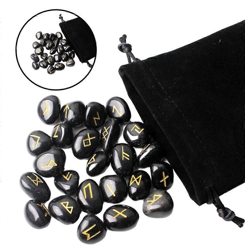 Runes Stones Set, Divination Rune Stones ,Viking Runes , Witchcraft Supplies,Runes for Beginners Black