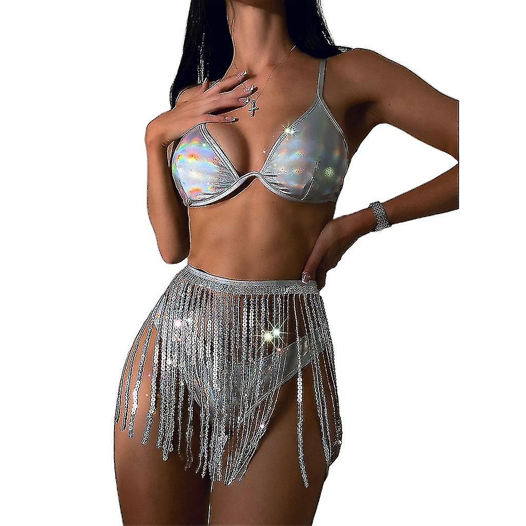 Rave-outfit-bikini Set Metallic Swimsuit Holographic-bandeau Top Bathing Suit