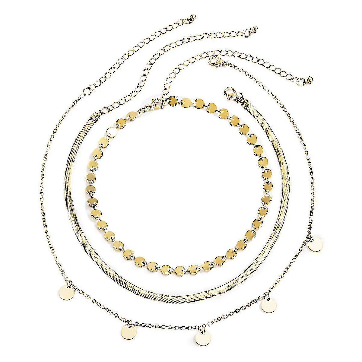 Layered Thin Choker Necklace Sequin Disc Beads Snake Chain Necklace With Pearl Bead Pendant