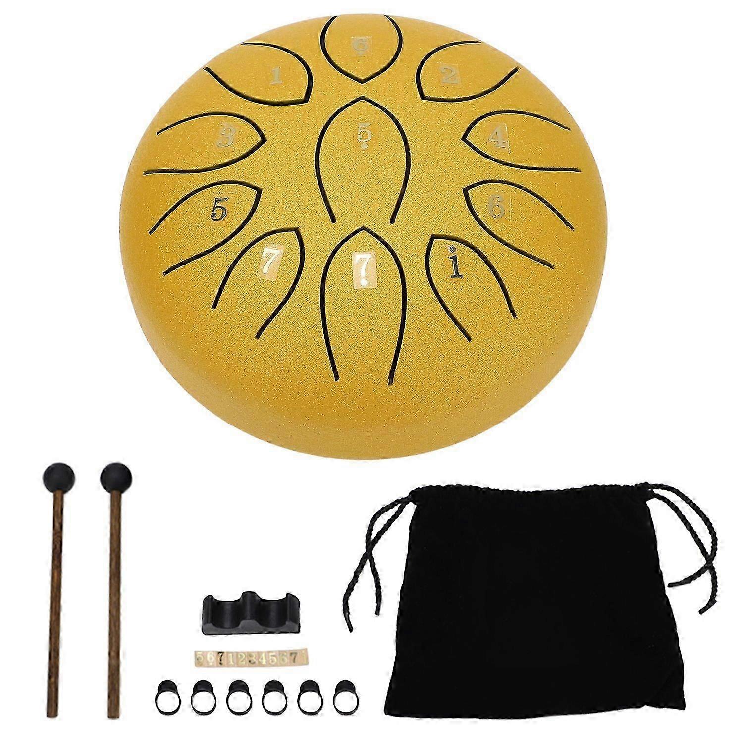 Rain Drum 6 Inch 11 Tones Stylish Appearance Carbon Steel Hand Pan Drum Percussion Yellow