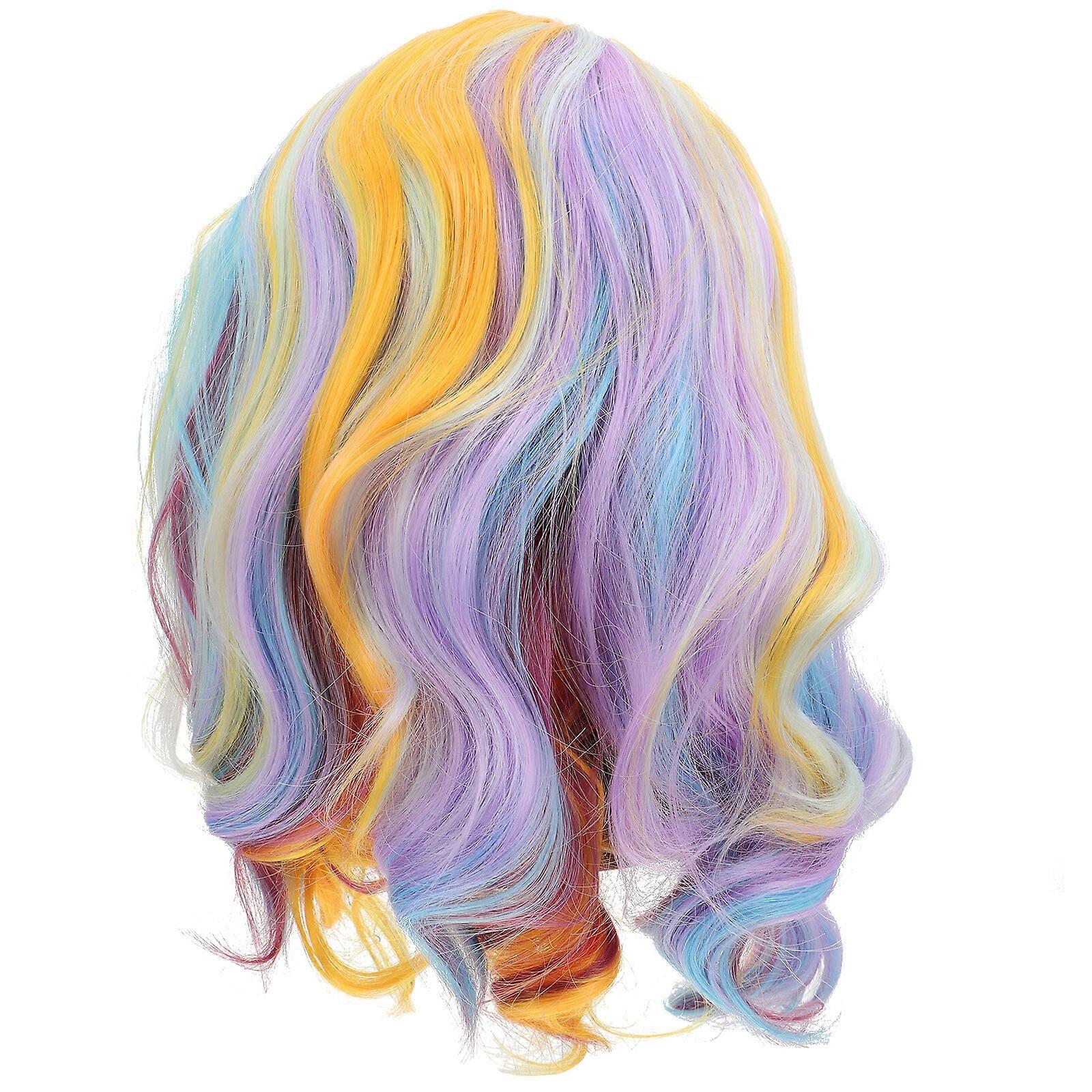 Rainbow Color Wig Shoulder Length Short Wig Cosplay Wavy Wig Party Costume