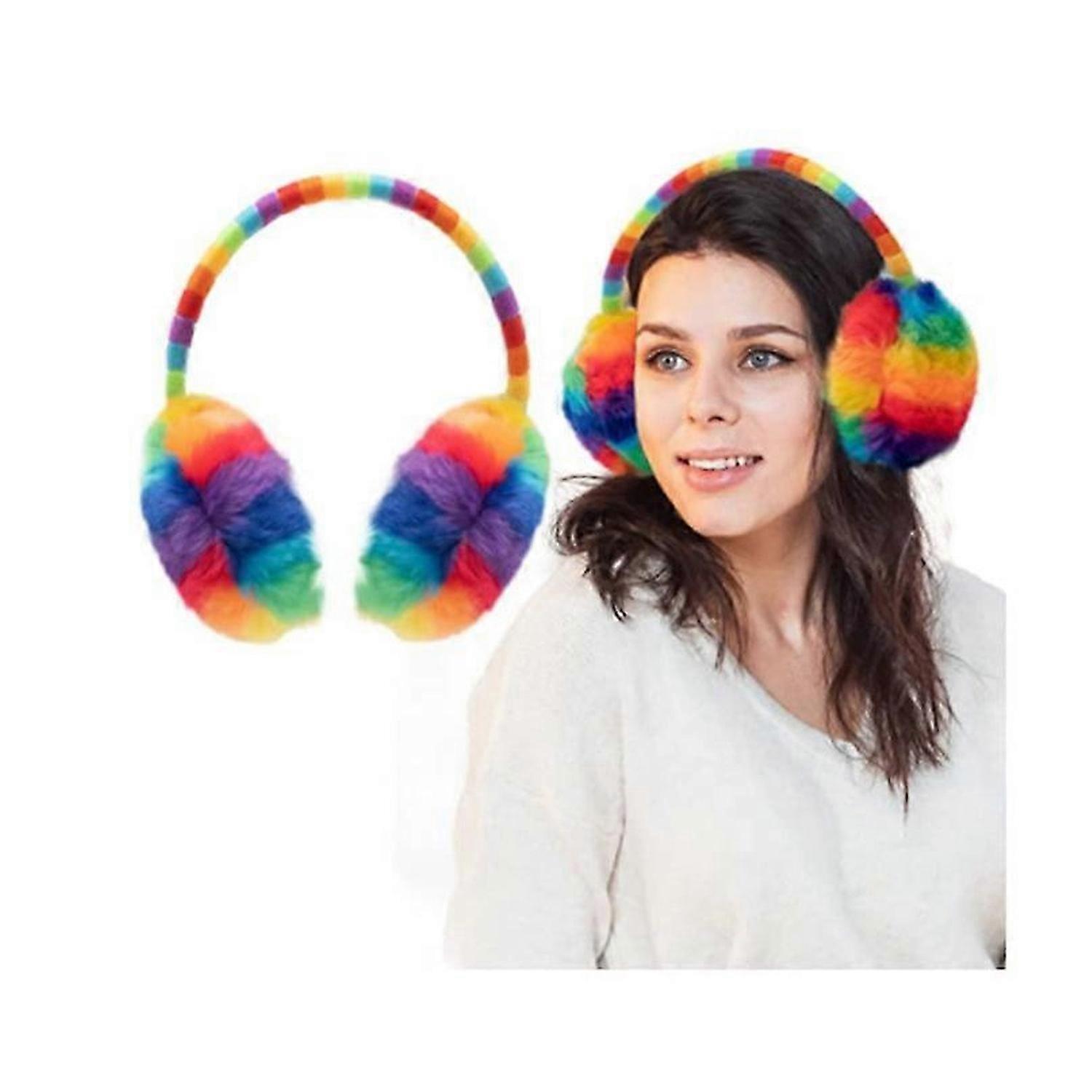 Rainbow Color Earmuff Winter Plush Ear Muff Outdoor Ear Warmer Christmas Gifts