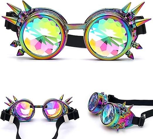 Rainbow Crystal Bling Glasses Kaleidoscope Goth Rivets Kaleidoscope Goggles