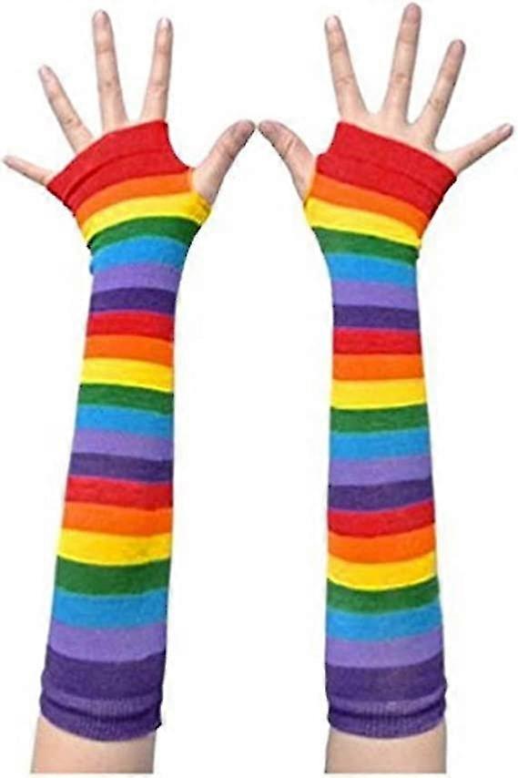Rainbow Stripe Arm Leg Warmer Knit Fingerless Gloves Stockings Costume(colorful)(1pair)