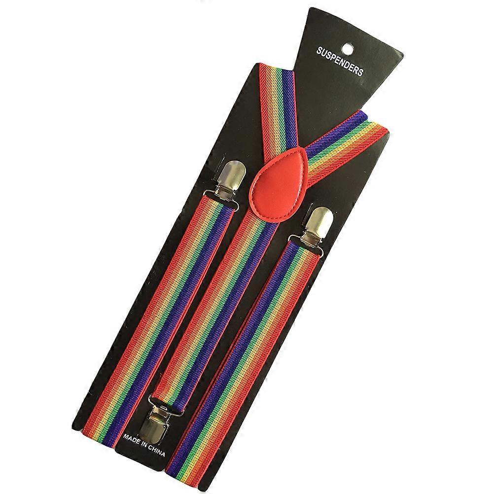 Rainbow Solid Suspenders Y Shape with 3 Clips Pant Braces Fashionable Clothes Accessory for Men and Women 65cm(B Style)