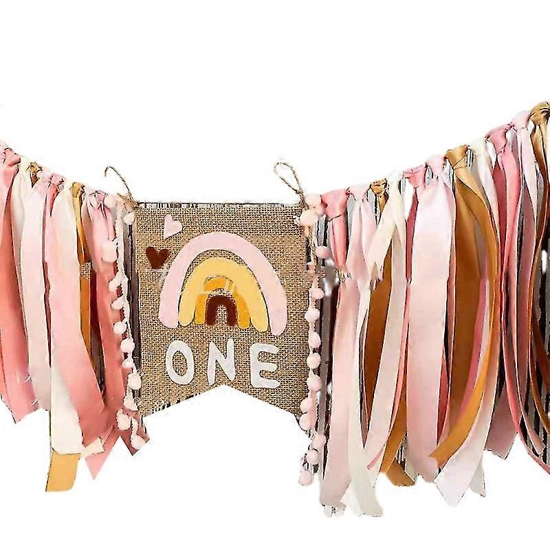 Rainbow Theme 1st Birthday High Chair Banner Boho Kids Birthday Party Highchair Banner Decoration Birthday Sign Props