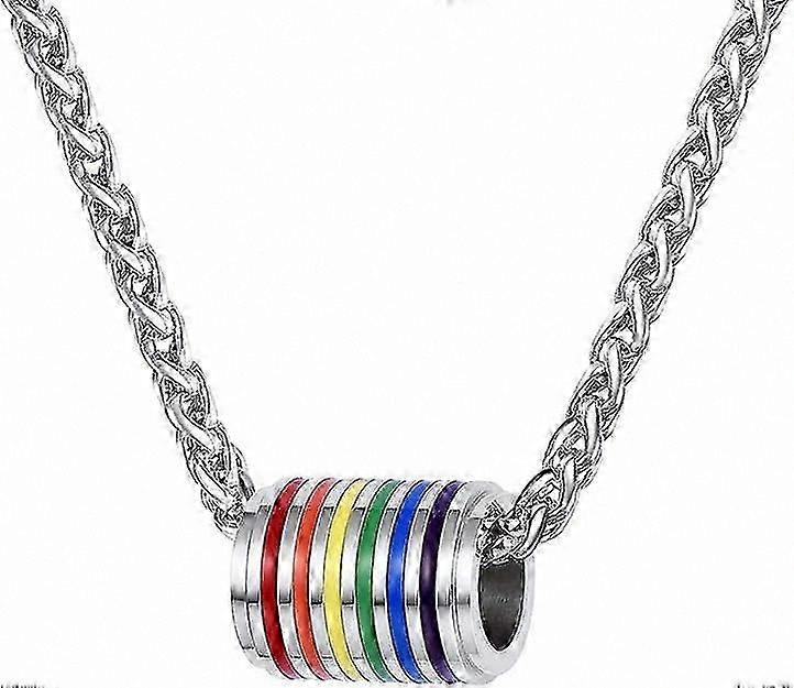 Rainbow Pride Bar Necklace in 925 Sterling Silver, Stainless Steel LGBT Charm with Gift Box, Dainty Lesbian Gay Dog Tag Jewelry