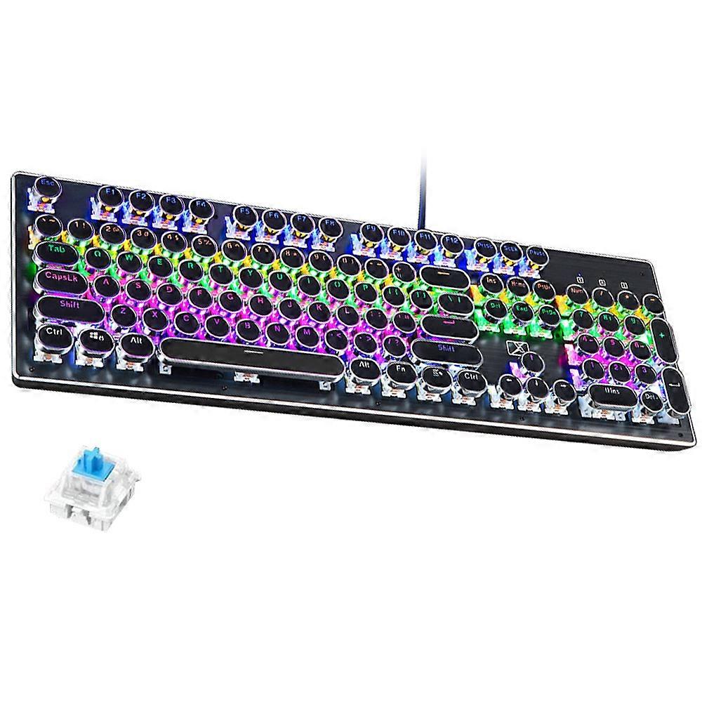 Rainbow Led Backlit Mechanical Gaming Keyboard, Ergonomic Design With Blue Switches, Multimedia Control Knob For Windows/Mac/Pc