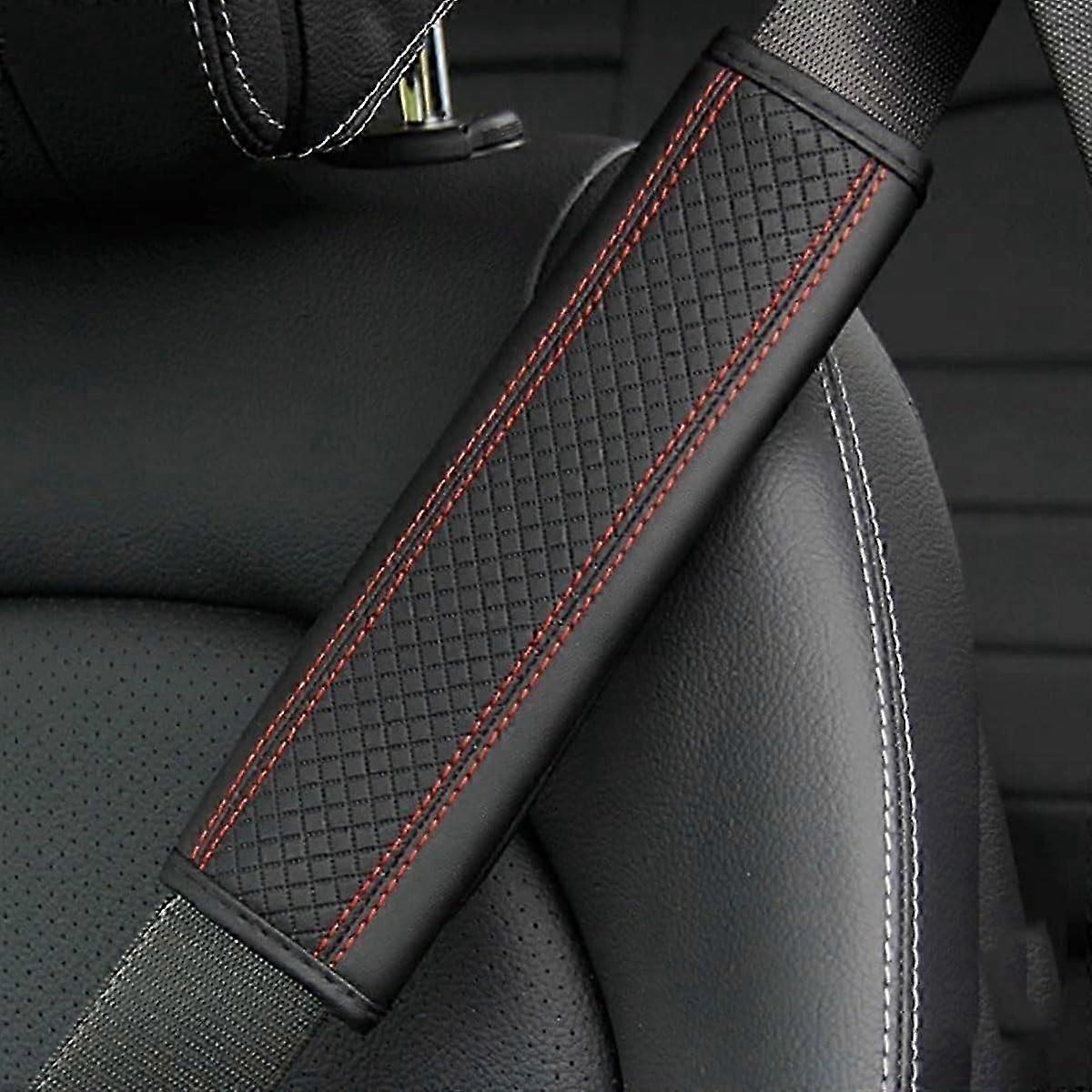 Leather Car Seat Belt Shoulder Cover 2Pc BMW iX3 G08 2020-2022 Black Red Decompress Comfort Breathable Anti Slip Cover