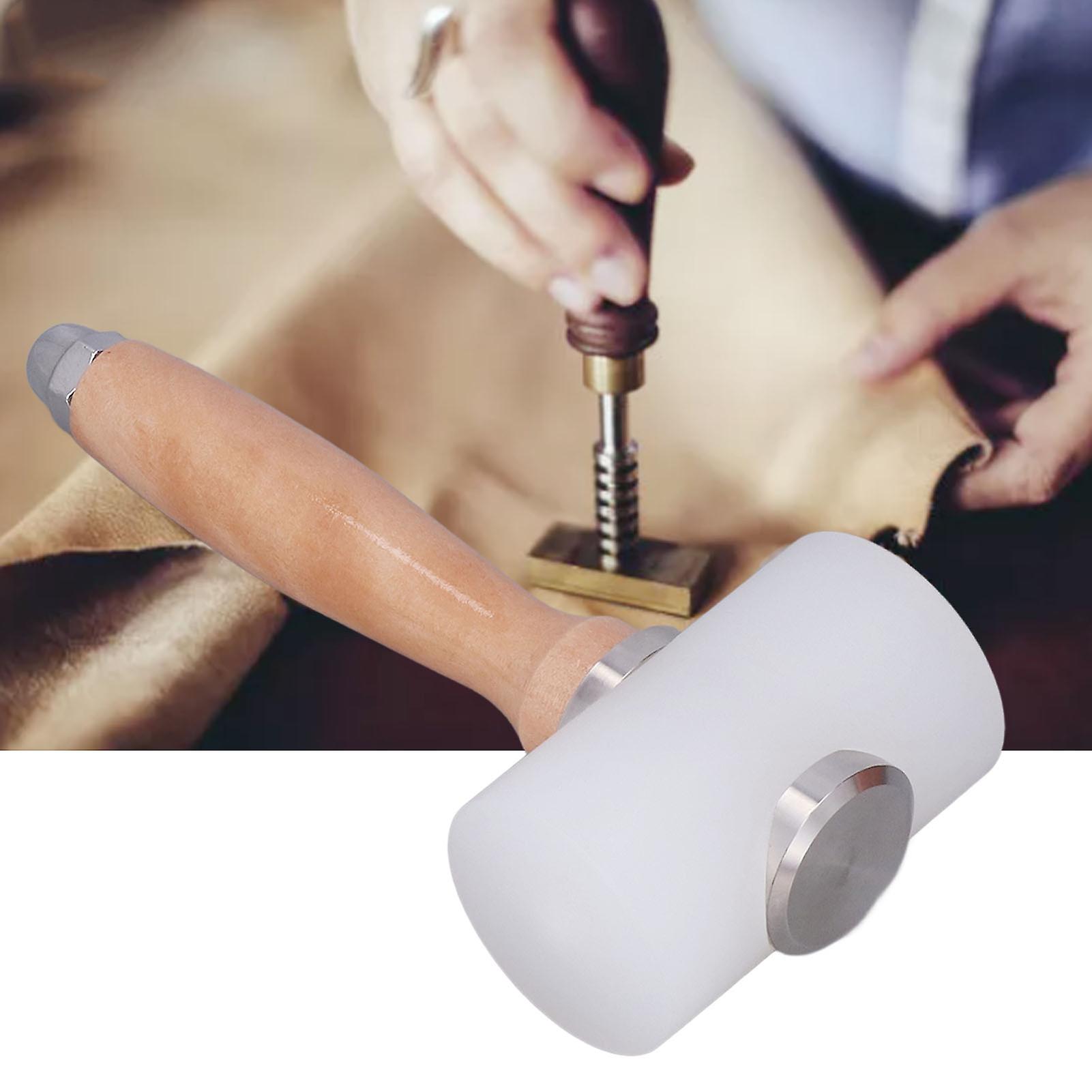 Leather Carving Hammer White T Shaped Nylon Leather Stamping Hammer Wooden Handle DIY Leather Stamp Carving Tool