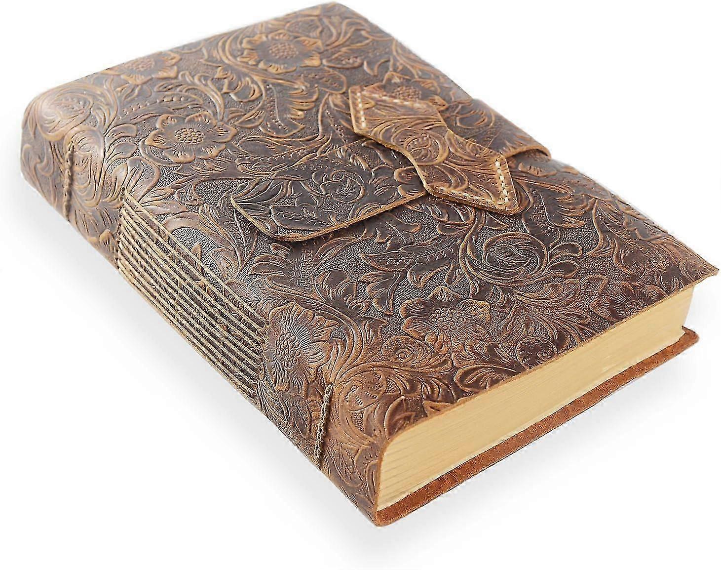 Leather Journal A5 Writing Notebook - Antique Handmade Leather Bound - Blank Paper (Brown Flower)