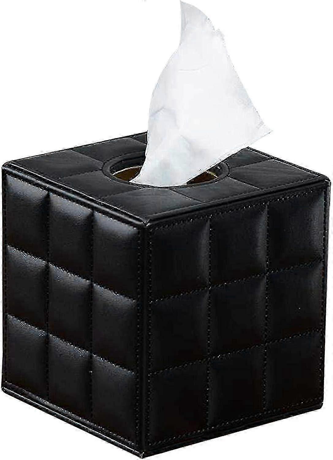 Leather Tissue Box, Square Paper Tissue Dispenser , Black