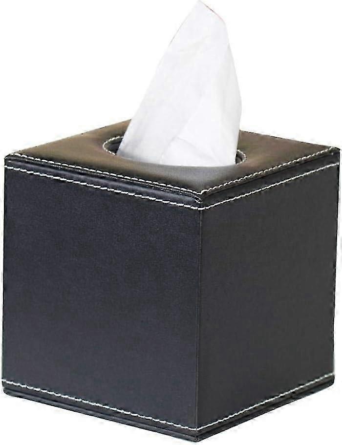 Leather Tissue Box Cover, PU Leather Tissue Dispenser, Facial Tissue Holder for Home Office Car, Black