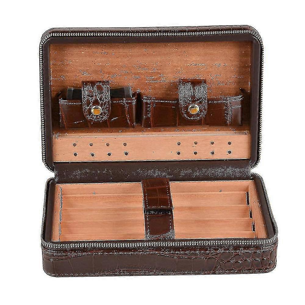 Leather Travel Cigar Humidor Case, Portable Cedar Wood With Humidifier Humidifier For 4 Ci