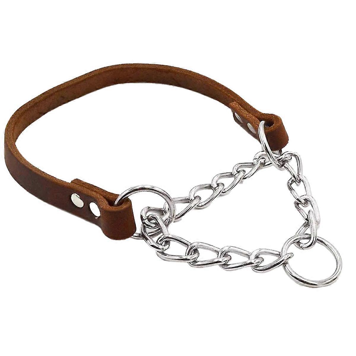 Leather Training Dog Collar, Stainless Steel Chain, No-Pull, Anti-Escape