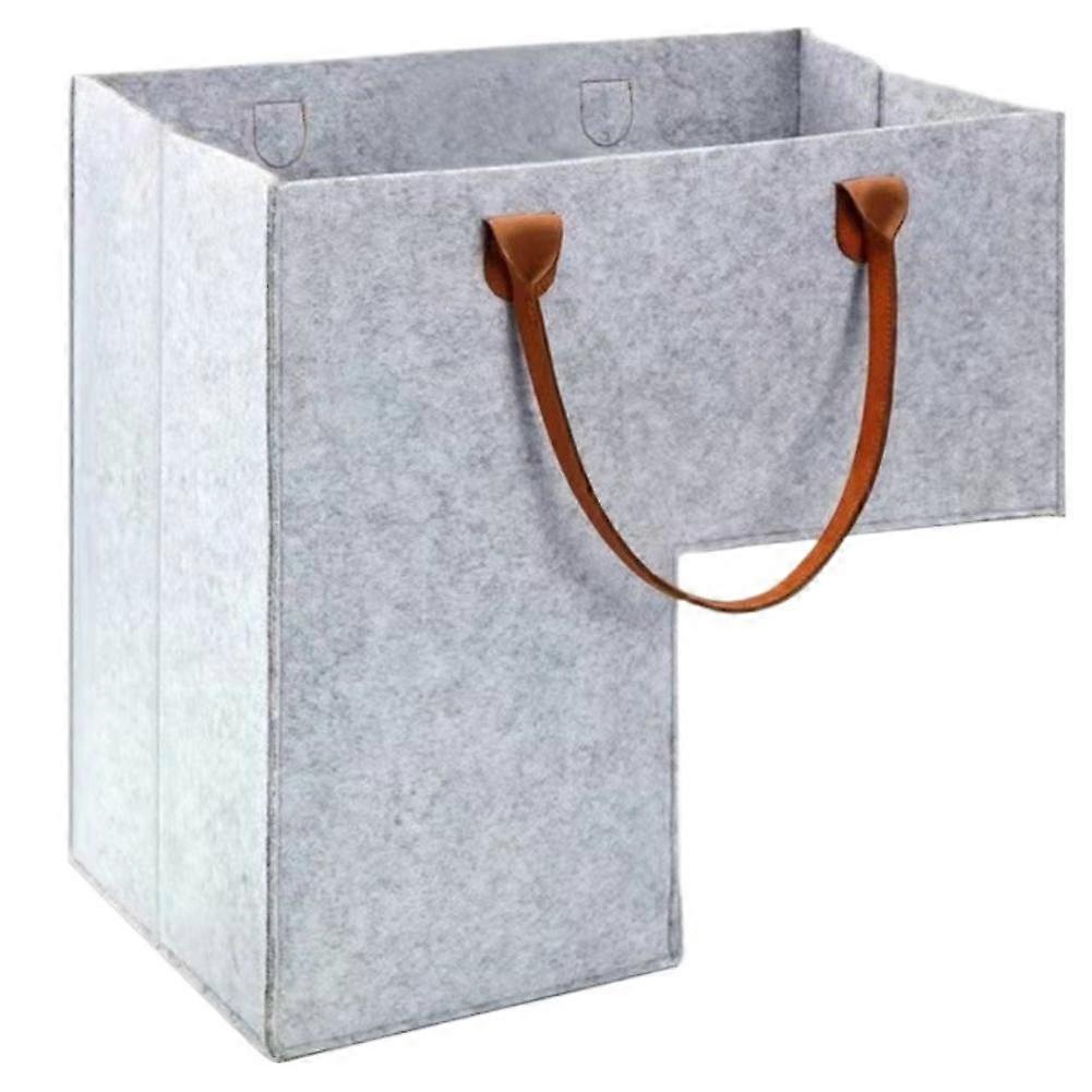 Stair Basket with Leather Handles Felt L-Shape Large Capacity Stair Step Bin