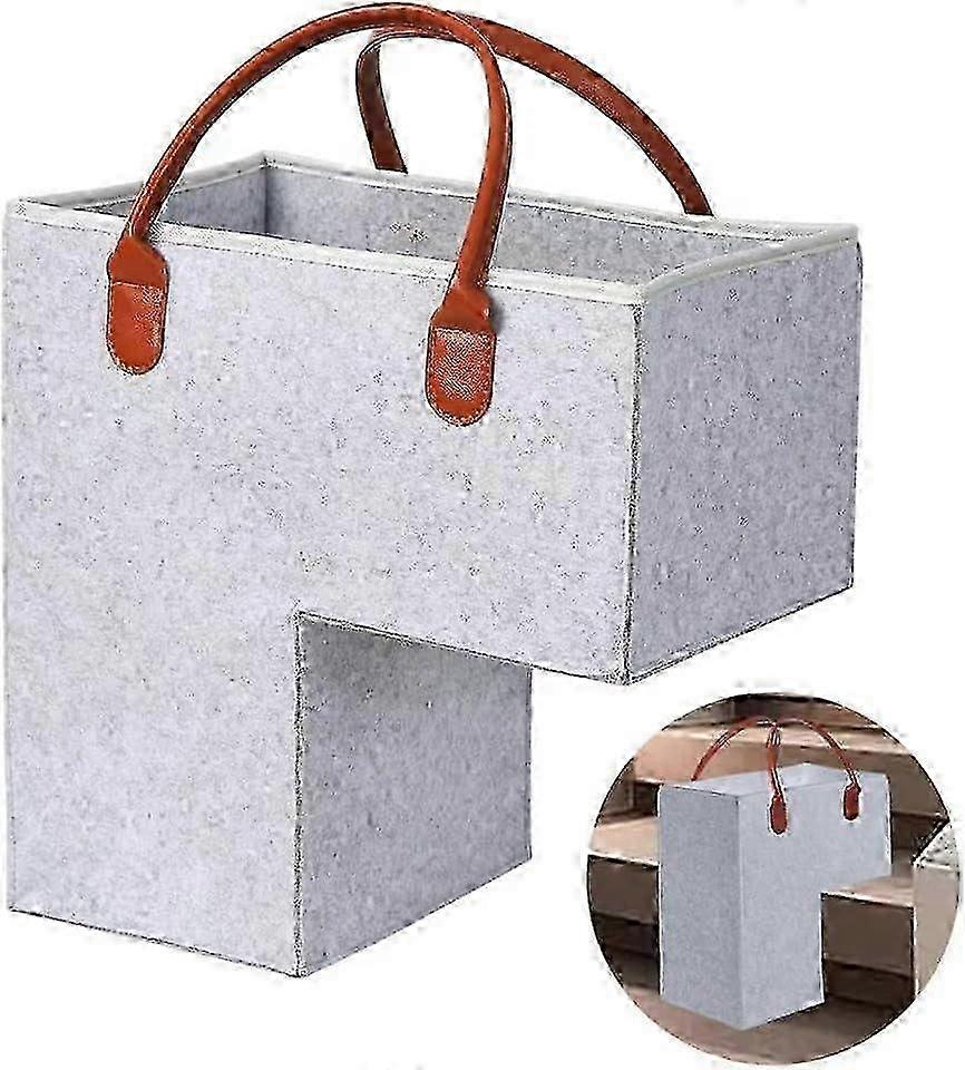 Stair Basket with Leather Handle - White Gray Step Basket