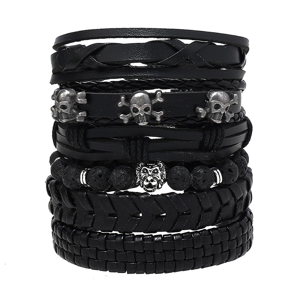 Leather Bracelet Men Stylish Skull Lion Head Accessories Bracelet Volcanic Stone Beaded Bracelet Men Punk Woven Charm Jewelry