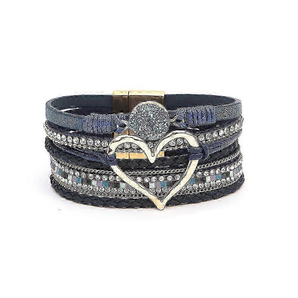 Leather Bracelet Women's Bohemian Multi-Layered Large Love Bracelet Jewelry Gift - Blue