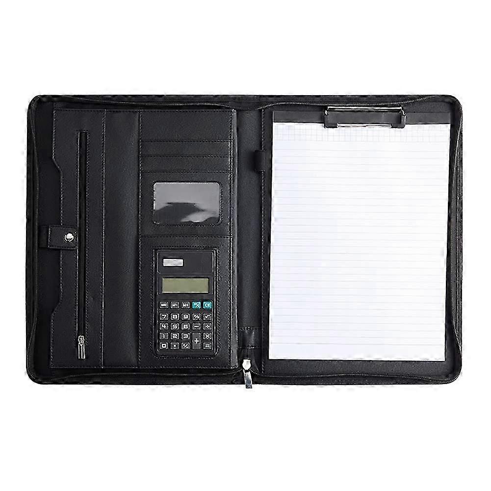 Leather portfolio folder with zipper for women/men, business padfolio with conference notepad, black Ref: 2352