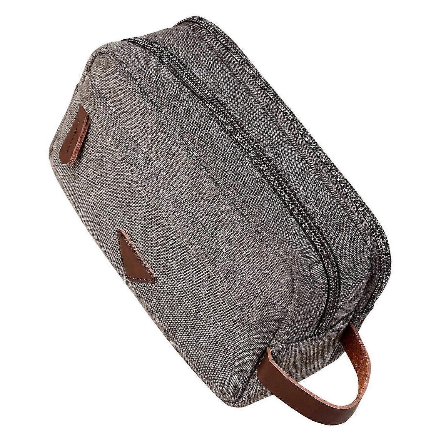 Leather Men's Travel Toiletry Bag with Double Compartments - Gray