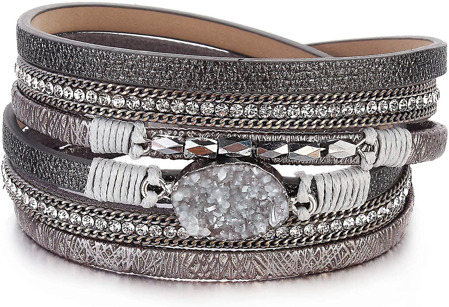 Leather Wrap Bracelet Boho Cuff Bracelets Crystal Bead Bracelet x