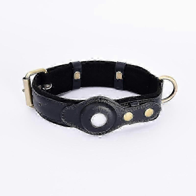 Leather Dog Collar, Built-in S Slot, For Large to Extra Large Dog Breeds, Adjustable, Yao Black
