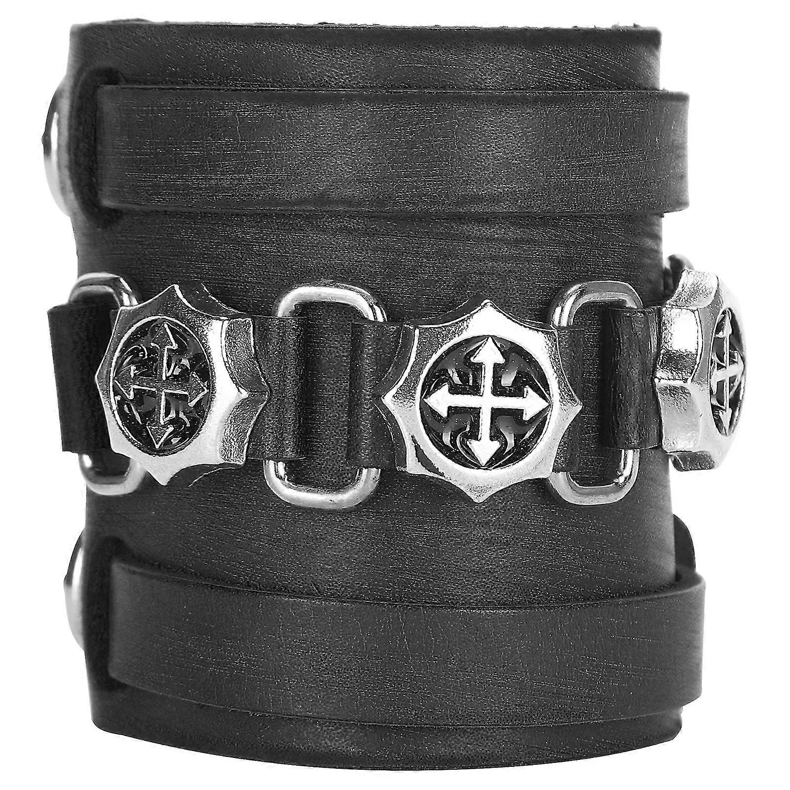 Leather Braided Bracelet Adjustable Wrist Cuff with Metal Decorative Vintage Design