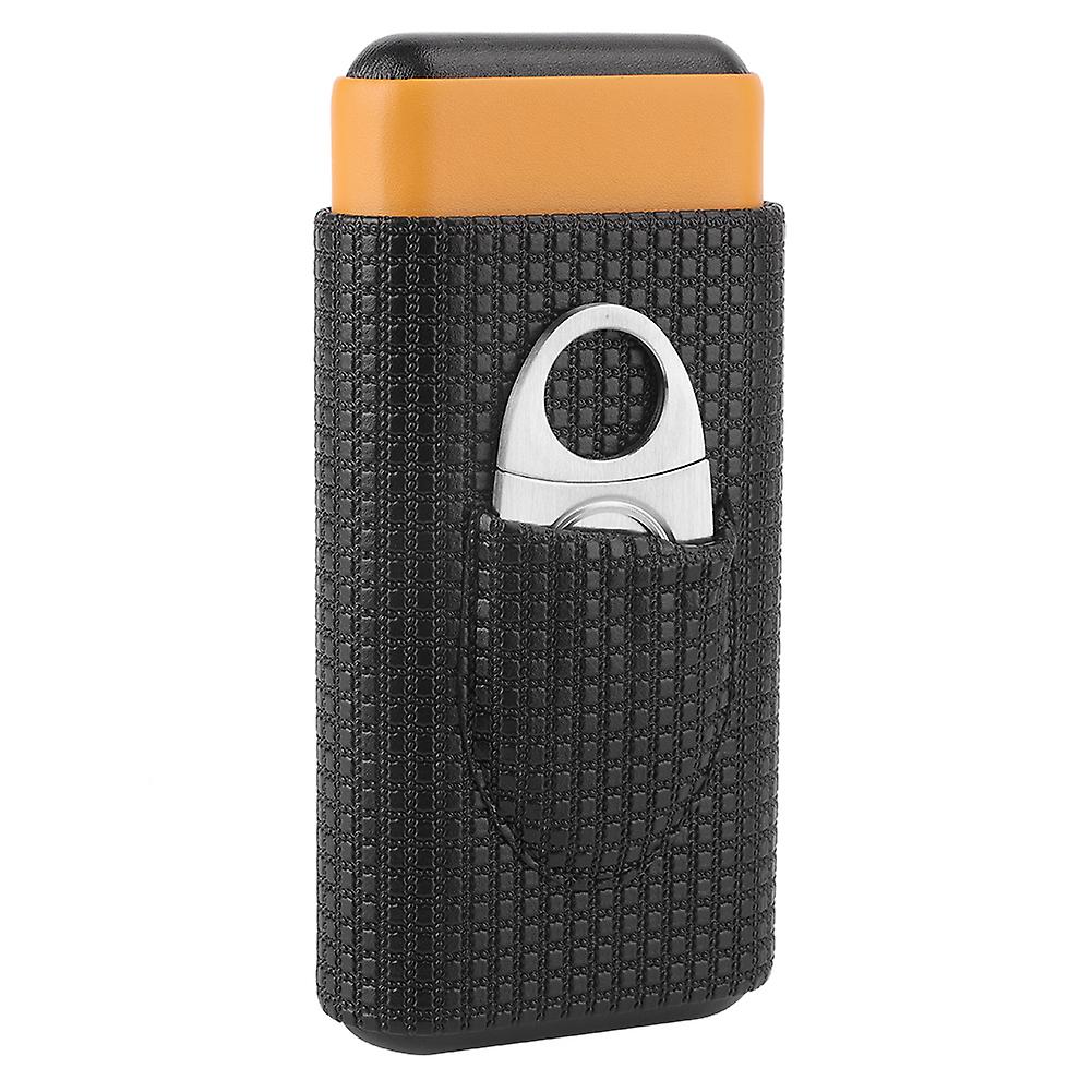 Leather Cedar Wood 3 Tube Travel Cigar Case Humidor with Cigar Cutter