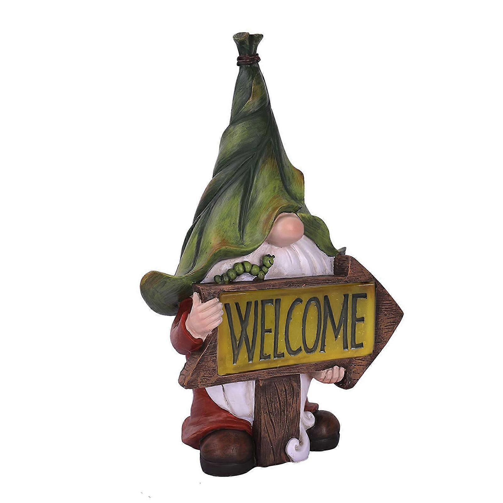 Resin Garden Figurine - Long Bearded Tomte Christmas Gnome Holding Welcome Board with Solar LED Lights, Festive Outdoor Decor for Patio Yard Lawn, Orn