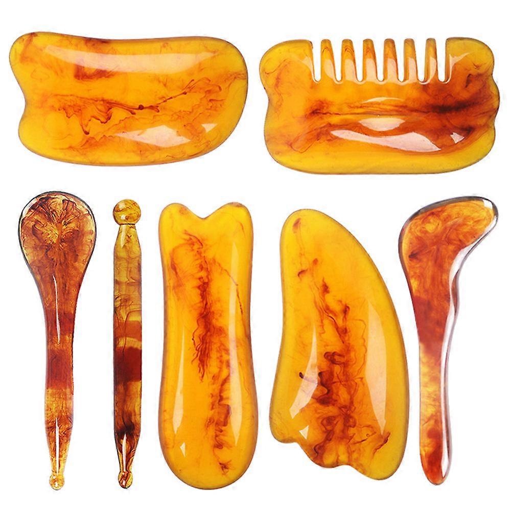 Resin Gua Scraping Board Amber Body 11.00X4.00X0.80CM Circulation 7Pcs