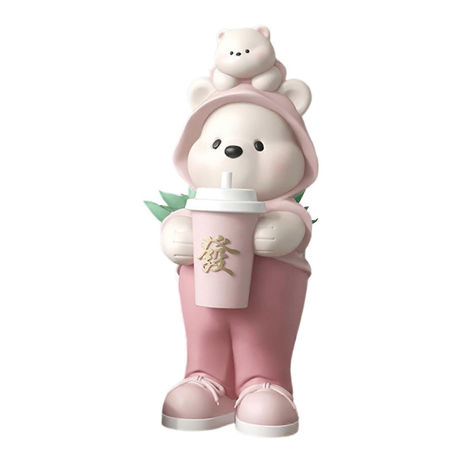 Resin Bear Figurine Freestanding Stylish Cute Animal for Desktop Kids Office Pink