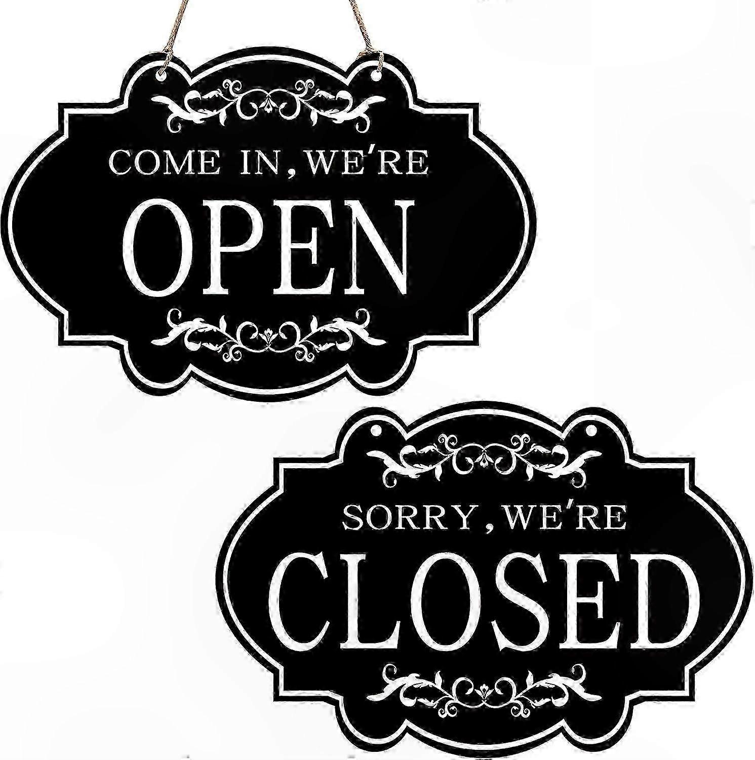 Reversible Open Closed Sign for Restaurants and Cafes, 30x20cm Hanging Board with Rope