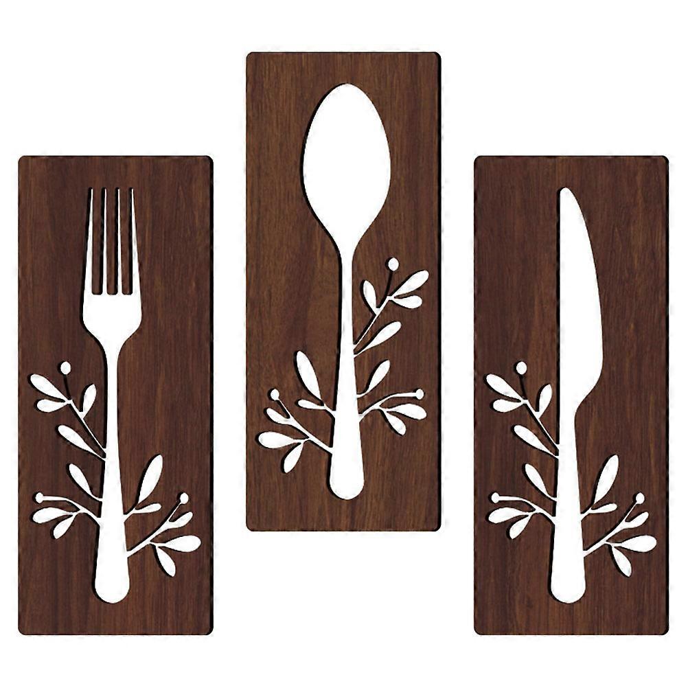 Wooden Fork Spoon Cutter Wall Decoration for Restaurant Dining Room Brown Basswood 1 Set