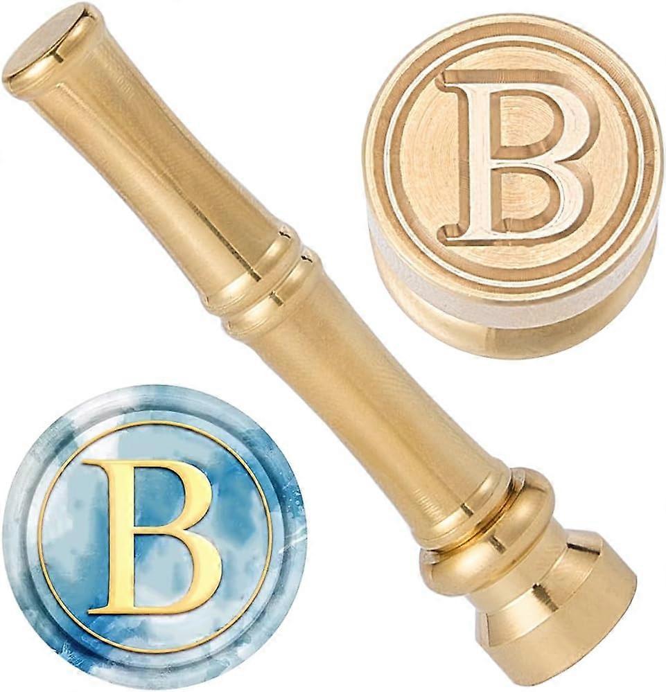 Letter B Wax Seal Stamp Alphabet Sealing Wax Stamps 15mm Golden Metal Brass Retro Vintage Mini Initial Stamp with Bamboo Stick Handle for Thanksgiving
