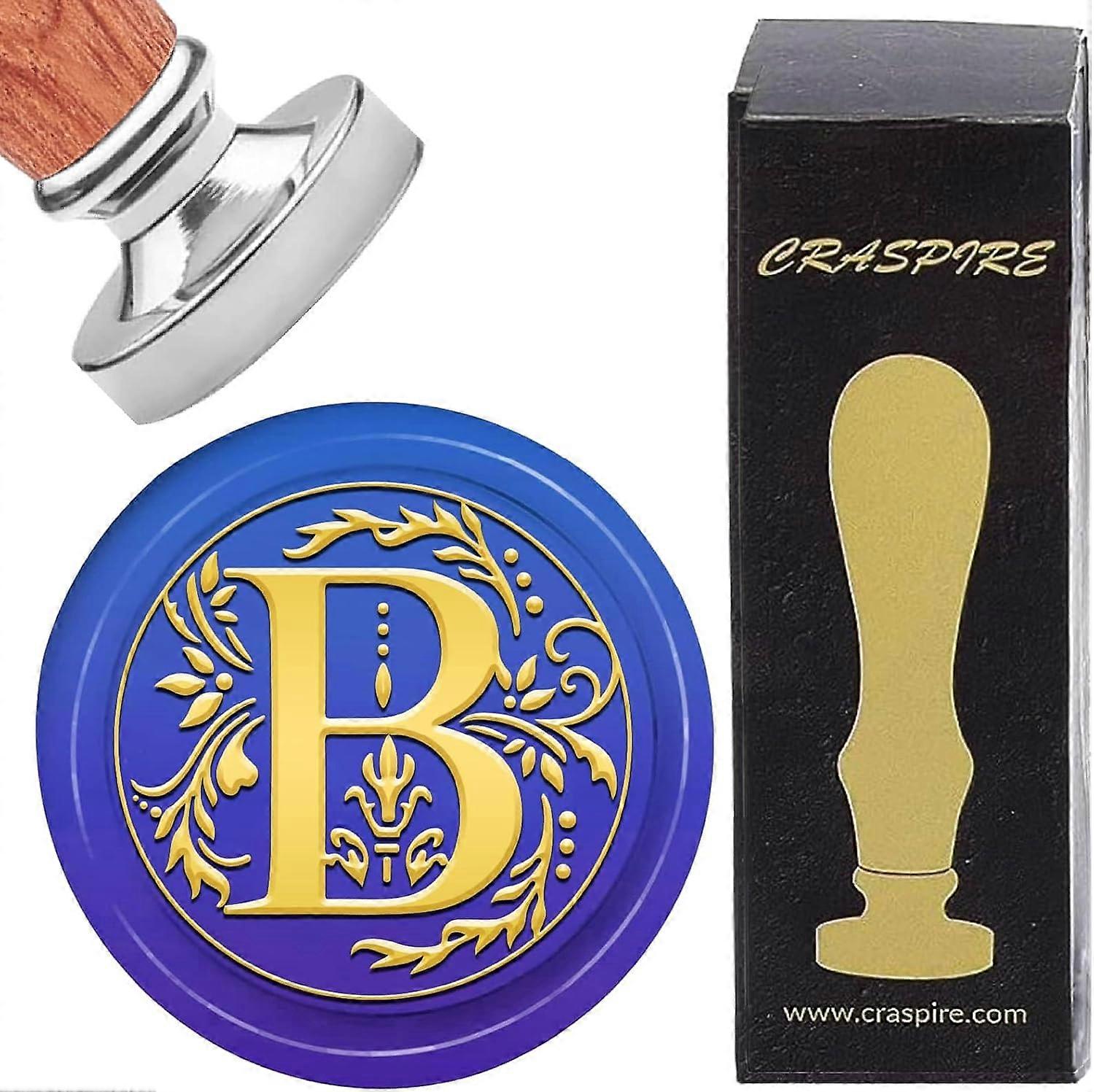 Letter B Wax Seal Stamp Vintage Removable Silver Brass Sealing Stamp Heads 25mm Initial Alphabets Copper with Wooden Handle for Wedding Christmas Enve