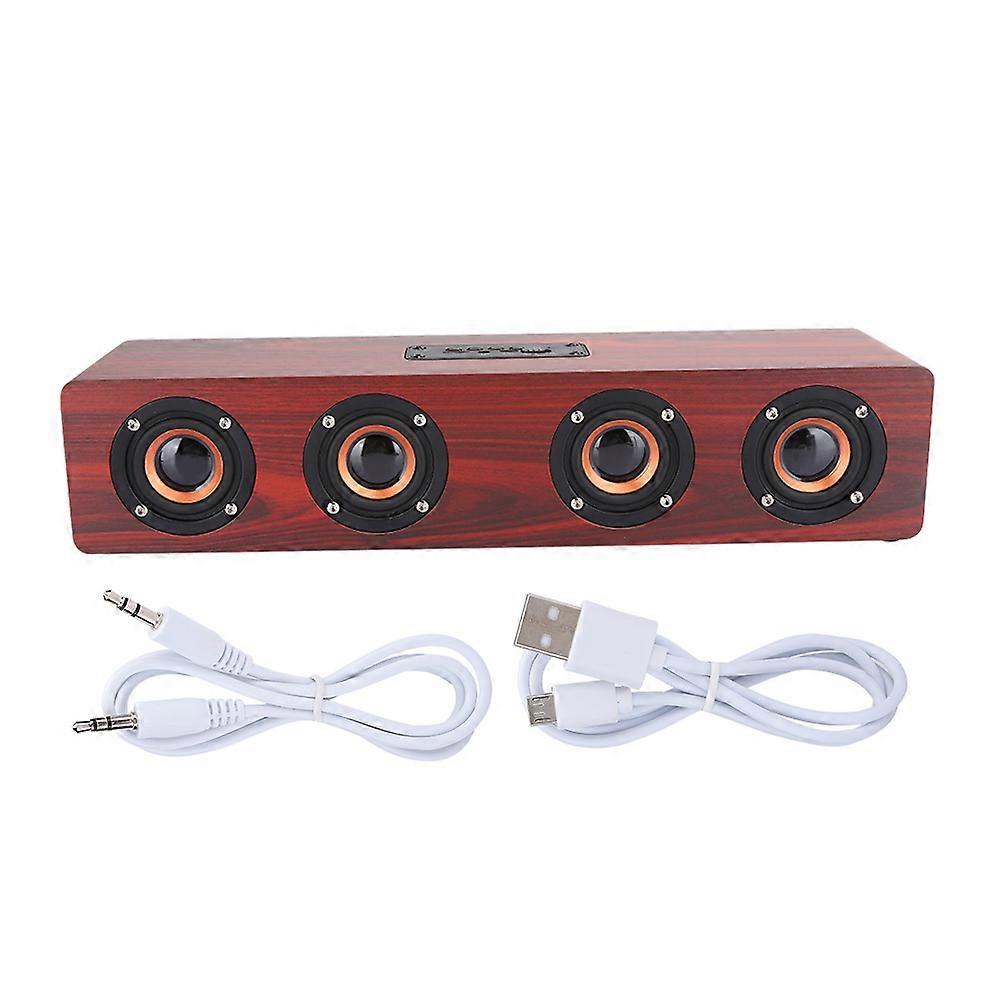 Red Wood Grain Bluetooth Speaker Wireless Subwoofer Pc Phone Desktop Music Player
