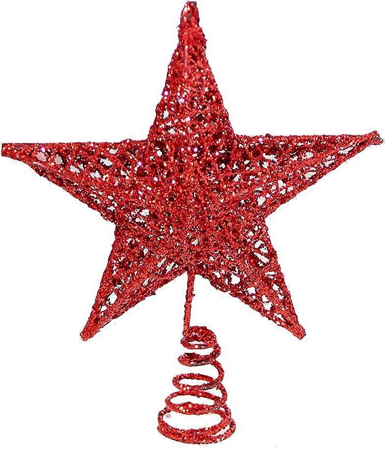 Red Glittering Metal Star Christmas Tree Topper Festive Ornament Glitter Merry Xmas Party Decoration Accessories(1pc)