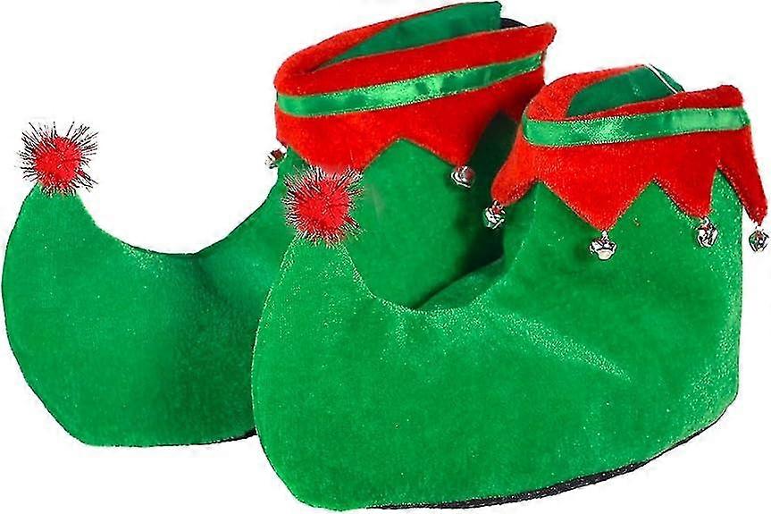 Red Green Elf Shoes - Red And Green Velvet Holiday Elf Feet Slippers With Jingle Bells For Adults And Kids