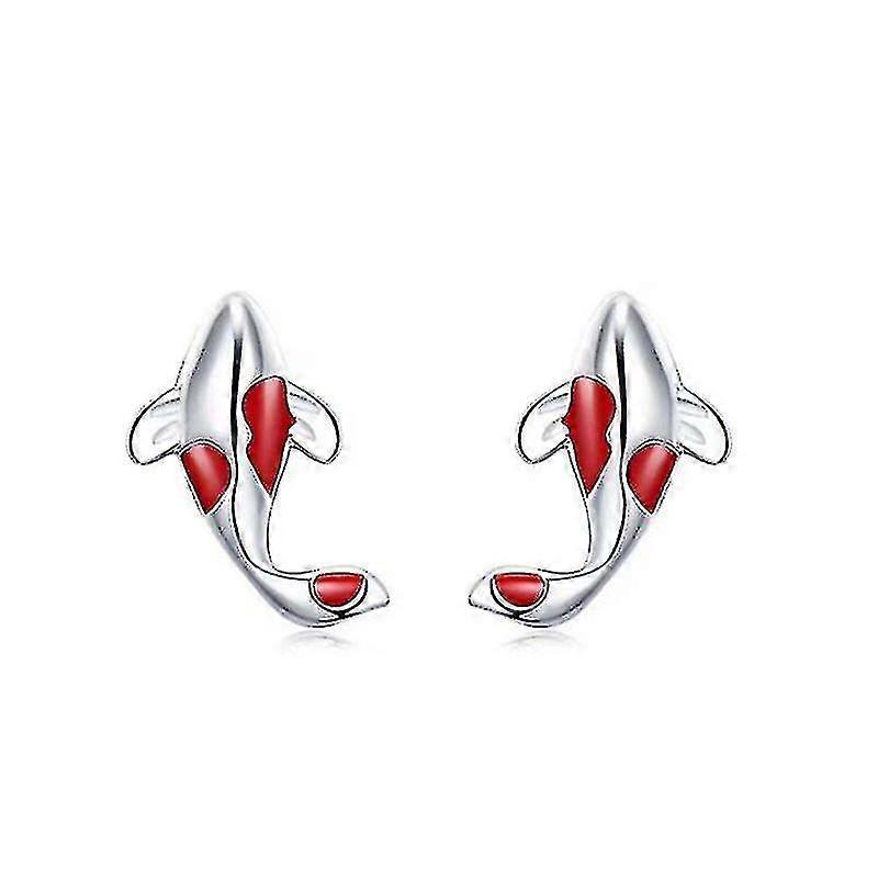Red Stud Earrings 925 Sterling Silver Fish Ear Studs Valentine's Day Jewellery Gift For Girls